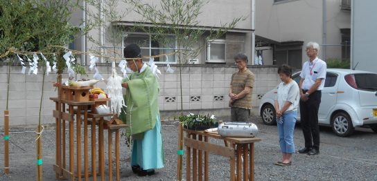 22日北小の南で地鎮祭が行われました。新築の住宅は平屋で21.5坪の広さです。認…