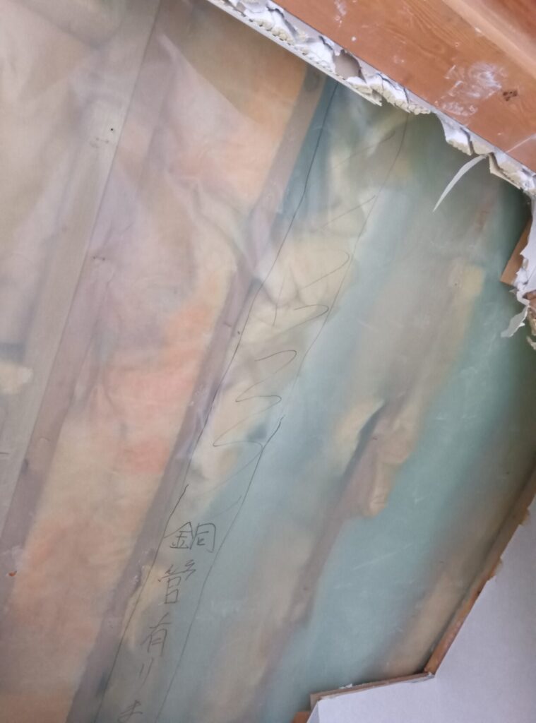 天井部分の断熱施工状態です。ある建物の屋根断熱の写真です。少し時間が経過しておりますが、断熱施工をきっちりお願いをしたいのと、この外を通る通気層をしっかり確保して入り口と出口を明確にする必要があります。ポリエチレンフィルムの施工と継ぎ目の明確な仕様を確認して戴ければ施工の不備による結露の被害から守れます。