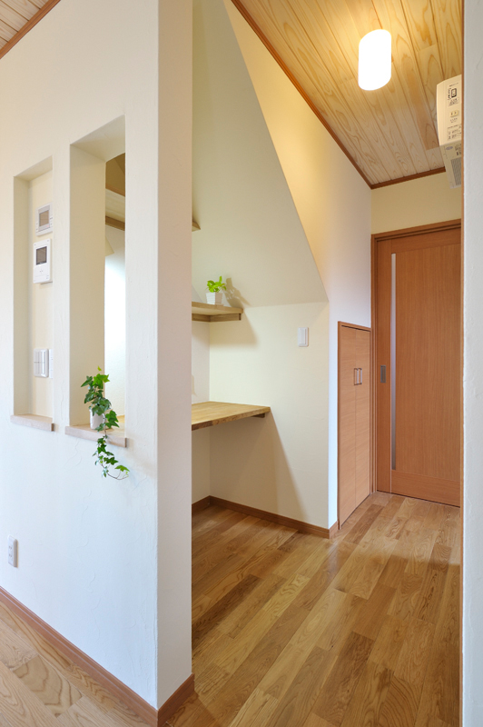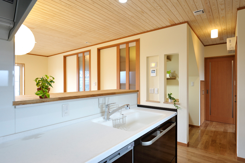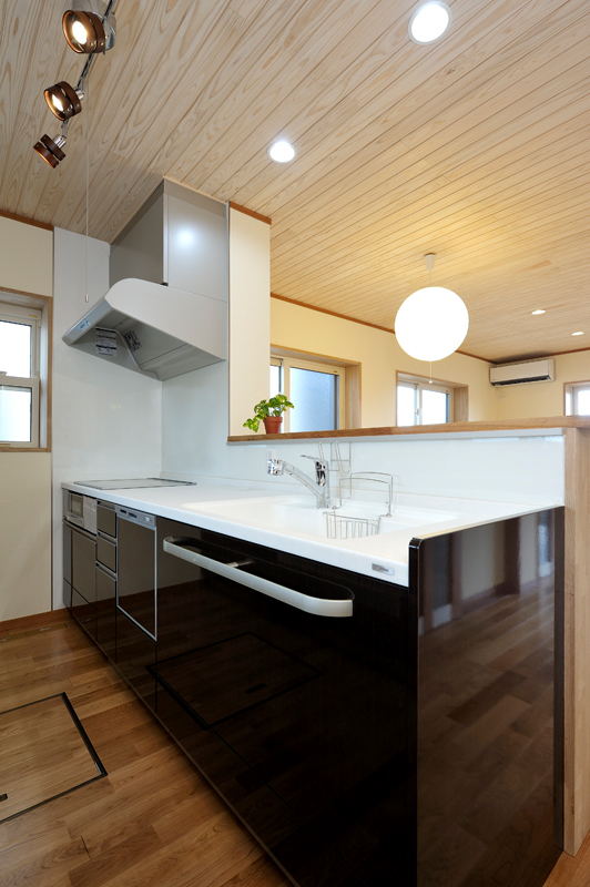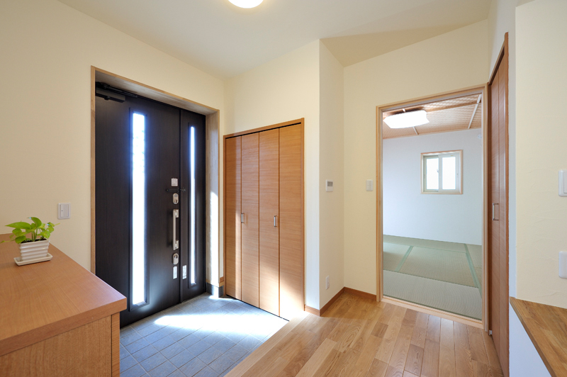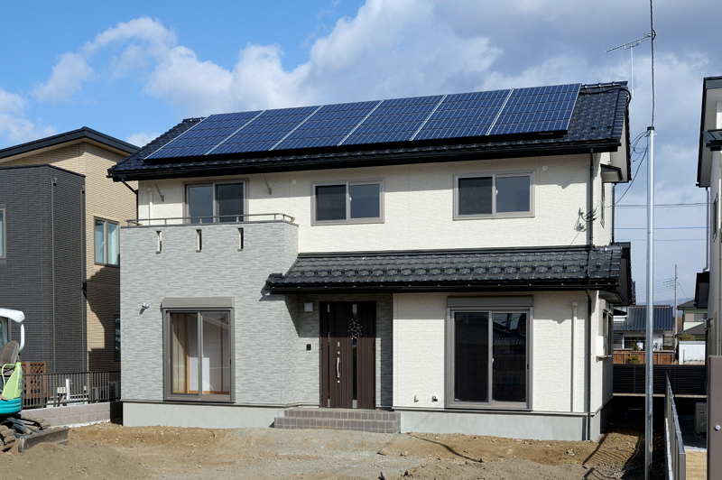 前橋市の中心部から国道50号を桐生方面に向かうと青果市場があります。今の住宅は国道と青果市場の間の東片貝町に完成致しました。住宅の規模は木造2階建てガルバニウム鋼板葺、延べ床面積、139.94m2の広さです。お客様との出会いは昨年の夏、お客様から弊社にお電話を戴き、ネットゼロエネルギー住宅でこの家がいくらでできるかとの問い合わせでした。お客様からは図面をおもちになり断熱仕様と暖かさ、涼しさに関する質問を受けました。弊社で取り扱える補助金の説明と、住宅の建て方を説明させて戴き図面を預かり、見積もりをさせて戴き契約になりました。住宅は220ミリ断熱でエアコンやエコキュウト、LED照明、太陽光発電等の設備が設置されHEMSを設備してゼロエネルギー住宅の条件を満たし完成たしました。