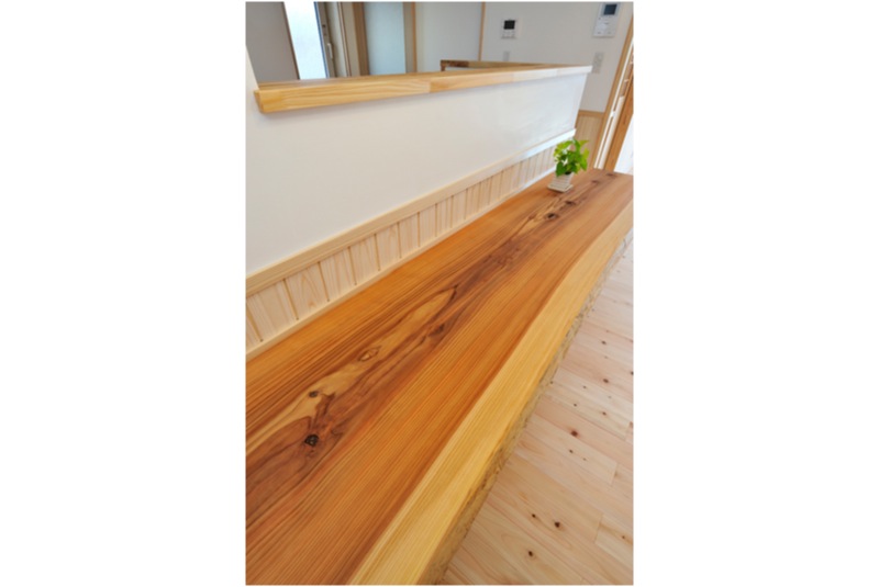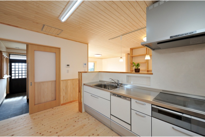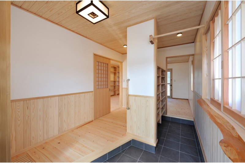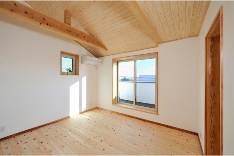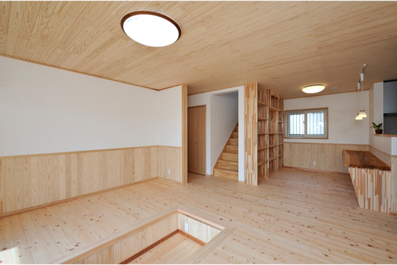 住宅内部には、ヒノキの床板や漆喰の壁、杉の天井と自然素材が沢山使われており、あるゆとりを感じる空間が広がります。