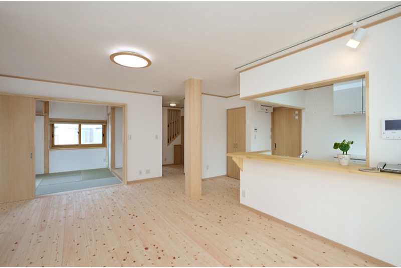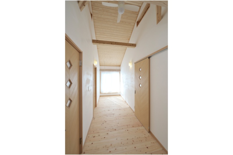 高崎から吉井に向かう途中、石原町鶴辺にゼロエネルギー住宅が完成しました。住宅の規模は木造2階建て瓦葺き、延べ床面積114.27m2(約35坪)です。外部は和型瓦に漆喰と腰板でどことなく見てみたいなと思う和風調に仕上がりました。住宅の内部はタモの式台に檜の床板、漆喰塗り壁と杉板の天井で自然素材を沢山使用しており、癒される空間に仕上がりました。断熱材はグラスウールで基礎150ミリ壁220ミリ屋根360ミリと高性能で使用したサッシはPVCのアルゴンガス入りLowEペアで熱線透過率の優れたもの、換気扇は交換効率80%の第1種です。屋根には、太陽発電の4KW強のり、使用した照明器具はLEDが中心で、暖房用器具には高効率エアコンと設備の効率化も進んでいます。2階には子供室と主寝室がありますが、それぞれのお部屋に屋根断熱の特徴で空間を利用したロフトがあります。