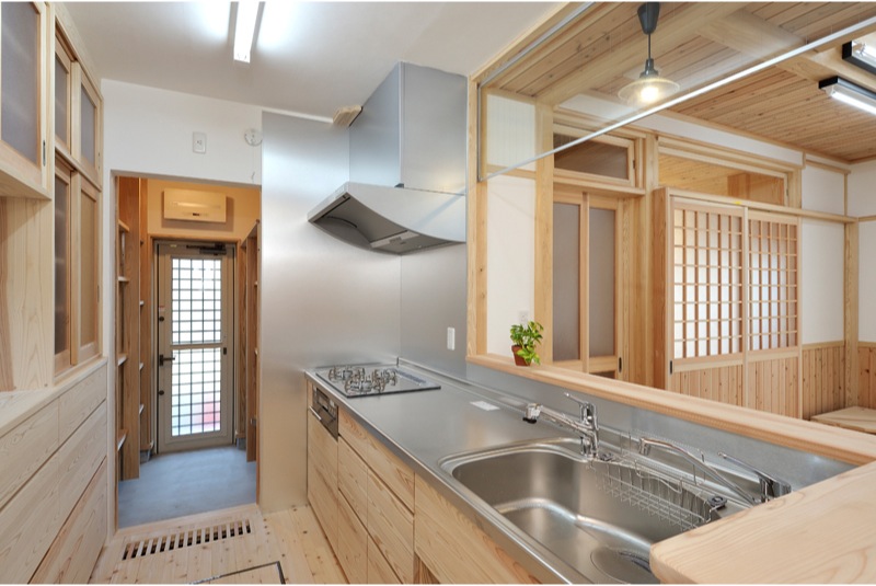 住宅は木造2階建ガルバ二ウム葺、延べ床面積約140m2の和風住宅です。住宅の外部、内部ともに壁には漆喰が塗られ、檜の床や杉の天井と自然素材が沢山使用されております。玄関にはお客様用のテーブルが設置されており、外部との接点場所が上手くとられた設計になりました。壁200ミリ断熱の住宅は、高効率な設備を伴いエネルギーのゼロ化に成功しています。太陽エネ温水器や太陽光発電、如何に自前の創エネルギーシステムでエネルギー負荷を小さくできたか今年一年が楽しみです。