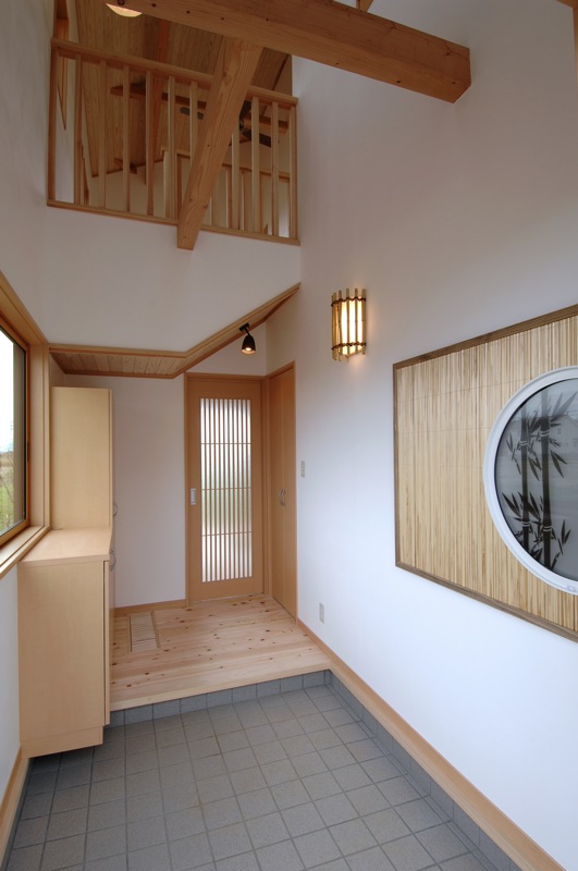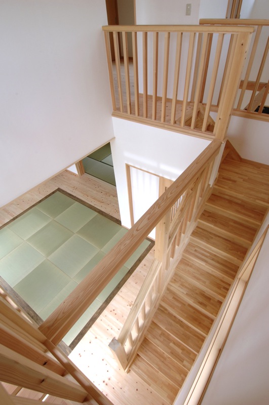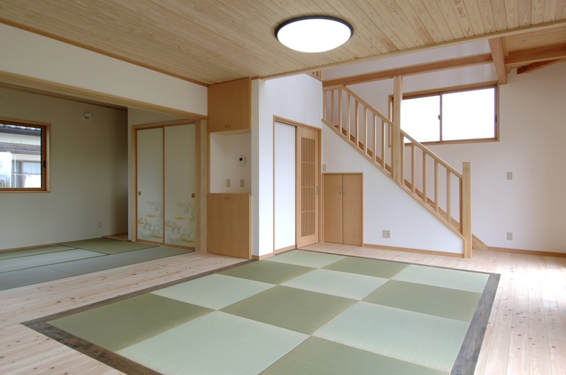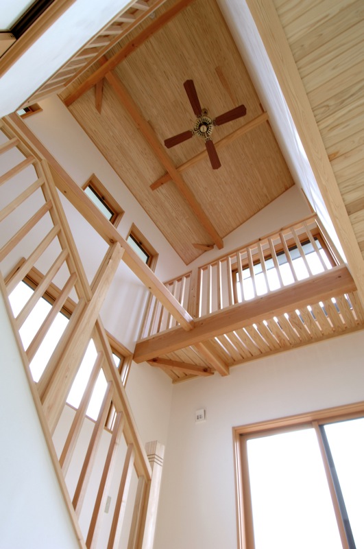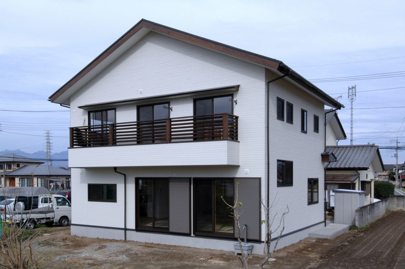 30今年の春、弊社が材木やを営んでいた頃のお客様からの御紹介で、高崎市新保町に住宅を建てさせて戴きました。昔で言うところの既存宅地内、住宅調整区域内の宅地に法改正後の必要な処理を経て上棟になりました。外部はグラスファイバーシングル葺 サイディング貼りの木造住宅です。内部は檜の床板 漆喰の壁 杉板の天井で良い気分です。広いリビングには3尺畳があり昼寝をするのに心地良さそうです。2階は勾配天井で広さがありシックに御蔭で明るい住宅での生活になりそうです。