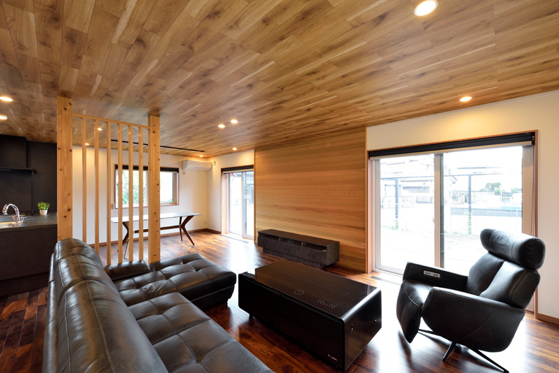場所は伊勢崎市田中島です。住宅の規模は延べ床面積 ㎡ 2階建ての広さです。外部のサイディングや木材の貼り方など沢山のアイディアが詰まった住宅です。