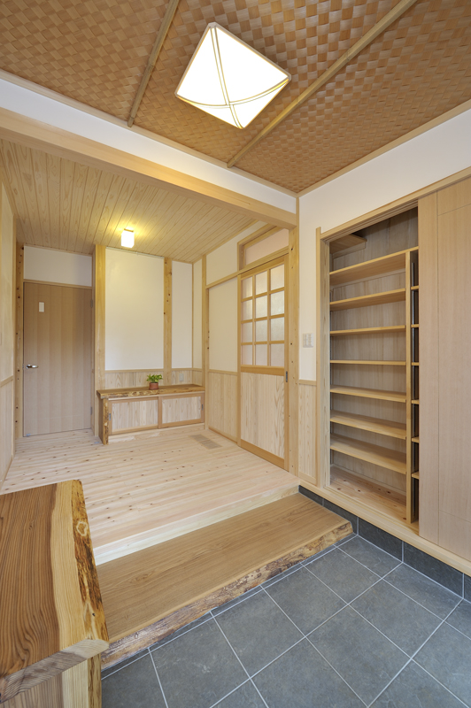 埼玉県の上尾市にQ-1住宅が完成しました。こちらのお施主様は奥様が北海道にある断熱工事をしている会社にお勤めのご夫婦です。住宅は夏対策用の腰屋根付き 瓦葺 約45坪の2階建てです。サッシはPVCのトリプルガラスで壁断熱は高性能GW120ミリとEPS50ミリが付加断熱してあり、基礎断熱GW48K100ミリになっています。住宅の内部は檜の床 漆喰壁 杉の天井と自然素材の宝庫です。芯壁は檜の顔が綺麗に化粧されて存在感を表し、梁 桁に囲まれた大きな吹き抜けは匠の技と心が安らぐ癒しの空間になっています。今年は夏が異常な猛暑でこの冬は厳冬の予想があります。これからむかえる木枯らしの季節、住宅内の温度差の解消と温度低下が起こりにくい住宅のこれからの1年が非常に楽しみです。