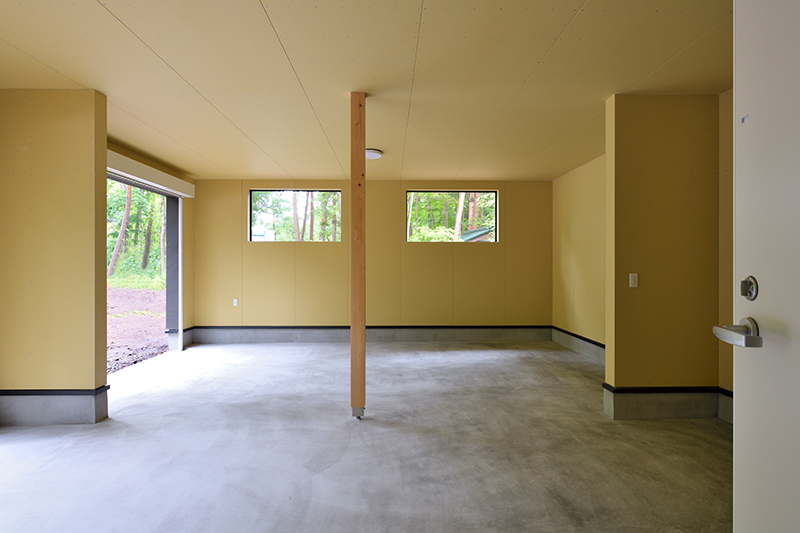 国道18号線を軽井沢から中軽井沢をぬけ追分へ、有名な1000m道路から少し下ったところに建つこの住宅は平屋でビルトインガレージ14坪を持つ50坪の住宅です。