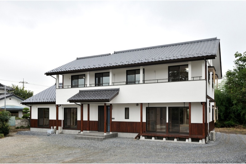 お客様との出会いは、一昨年の春、弊社に内覧会にお越し頂いた事でした。藤岡市本郷は藤岡市内から南西に車で10分ほど走ったところです。昔ながらの閑静な住宅街です。古民家の断熱耐震改修の見積をさせて戴いたのち、やはり解体して新築へという事になりました。この住宅は木造二階建て瓦葺 延べ床面積293m2の2世帯住宅です。