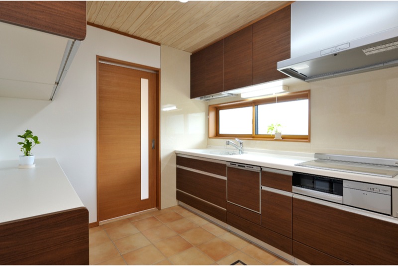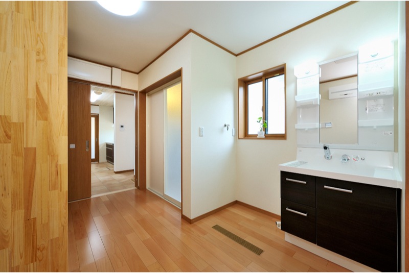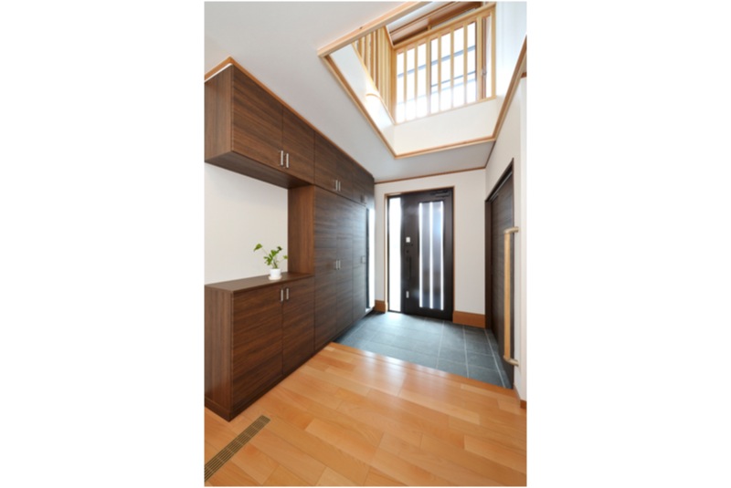 断熱は基礎断熱グラスウール40k100ミリ、壁断熱高性能グラスウール16k120ミリ、吹込み用グラスウール300ミリで熱交換型換気扇と樹脂サッシのアルゴンガス入りLOWEペアガラスになっております。和風造の外観は。漆喰壁が存在感を鮮明に表しており、住宅の奥深さを連想させます。若者世帯は現代風の内装仕上げでご両親のスペースは漆喰や檜の床板など自然素材が沢山使われた仕上げになりました。