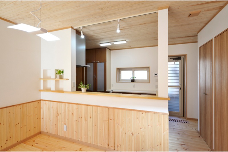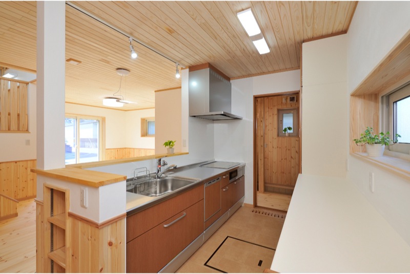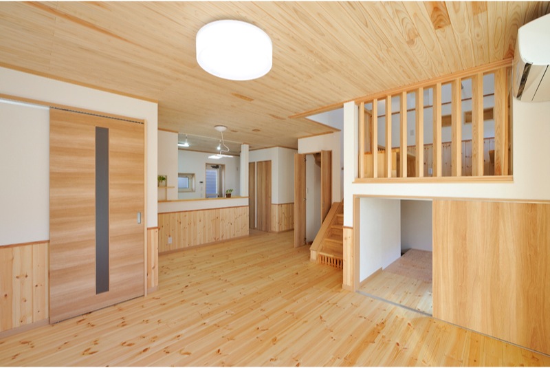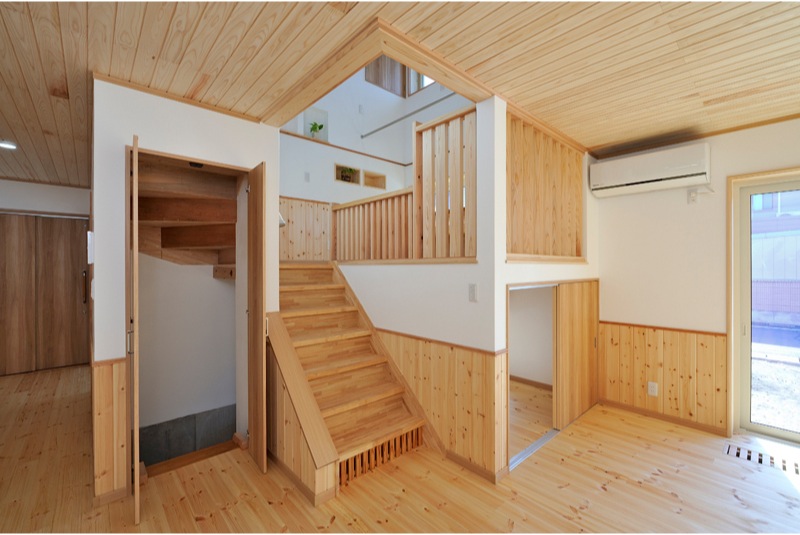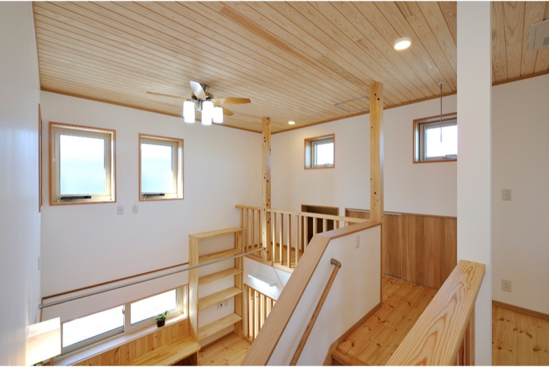 断熱材は、基礎断熱、40Kのグラスウールが150ミリ、壁には高性能なグスラスウールが200ミリ、屋根にも高性能なグラスウールが360ミリ施工させて戴き、サッシは樹脂サッシでアルゴンガス入りLOWEペアのサッシを使ったQ-1住宅です。基礎高が600ミリほどあり物入れに使用できる床下空間と、子供室や寝室の色合いも整った住宅です。特に1階部分のトイレ、洗面,ユニットバスと隣接の居室の入り口の広さと、ローカの幅員の広さに高齢者対策が済んでいます。ぐんま優良木材やネット・ゼロエネルギーの補助金も予定されています。