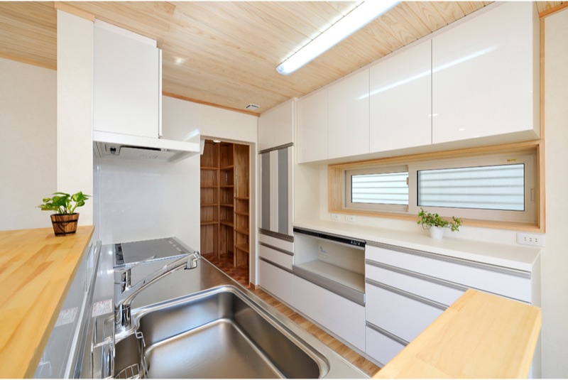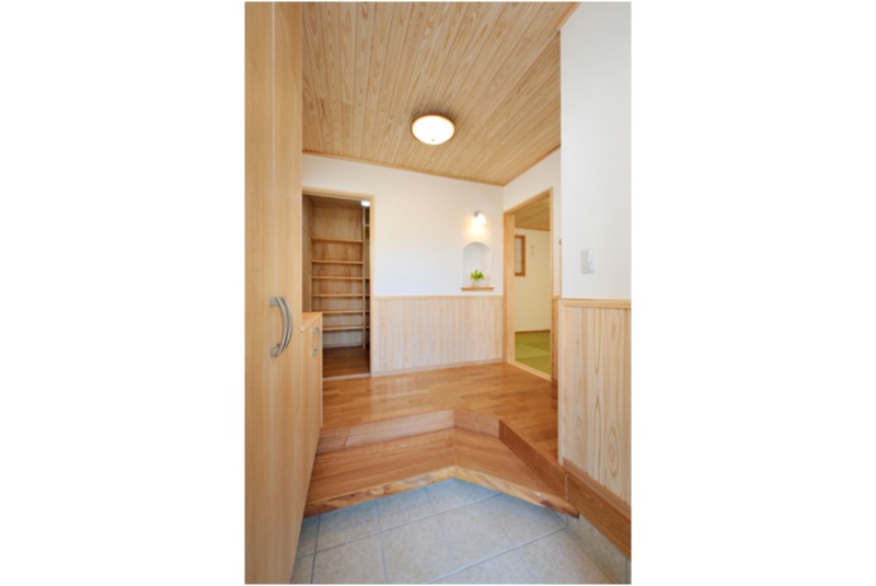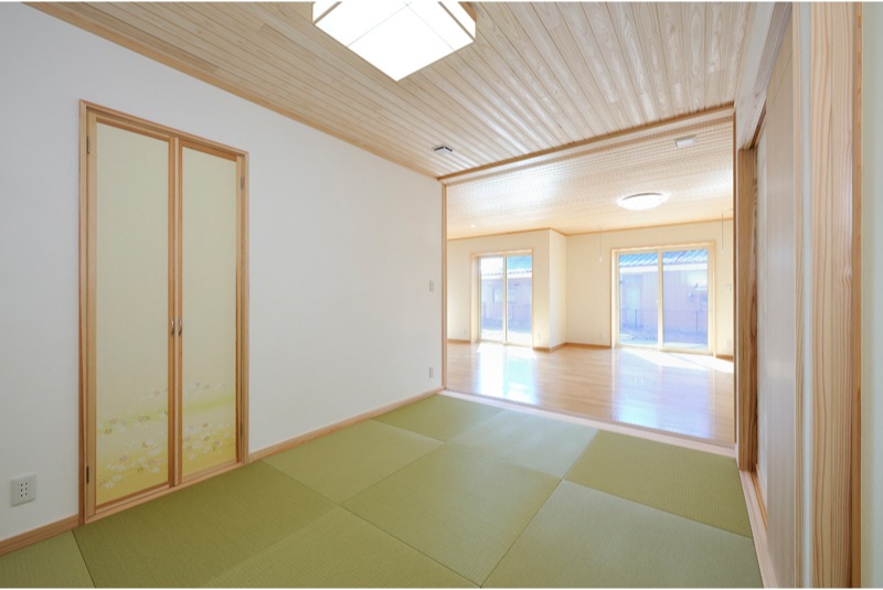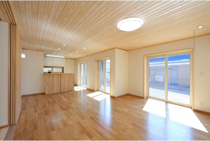 国道50号を太田市から足利市に入り、3㎞程走ってから左折して、閑静な住宅街の中に壁220mm断熱の住宅が完成しました。木造2階建て瓦葺 延べ床面積129.6m2の広さの住宅です。ご夫婦とお子様の3人で暮らされる様です。昨年、新住協 関東支部の有志により発行した、北関東の高断熱住宅の第1号をもって弊社にお越し頂き、建築中の住宅やお引き渡しを受けている住宅、完成内覧会にお越し頂き、住宅を建てさせて戴きました。外部はサイディング ツートンに張りわけられており、落ち着いた雰囲気の玄関サッシが気品の高さを訴えております。内装は無垢の床板 杉の天井板に漆喰壁やケナフと自然素材が沢山使用されたお部屋に仕上がりました。壁220ミリ断熱は暑さや寒さが厳しいとき威力を発揮し、冬暖かく夏涼しい住宅は、まだ小さなお子さんにとって非常に大きな力を与えてくれそうです。太陽光発電がのり、究極のエコハウスの完成です。