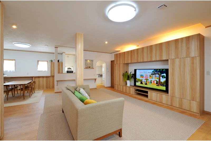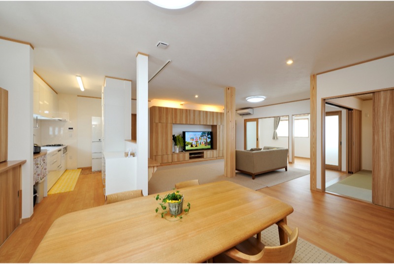 居住部分では大きなリビングに特徴があり、使いやすい動線がつくられております。