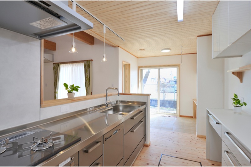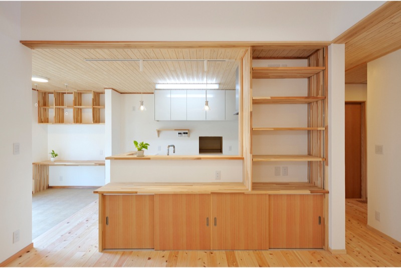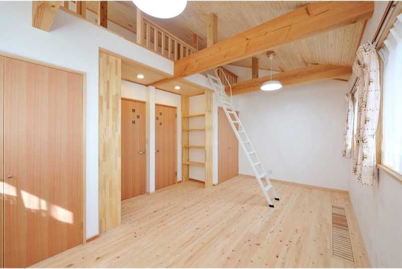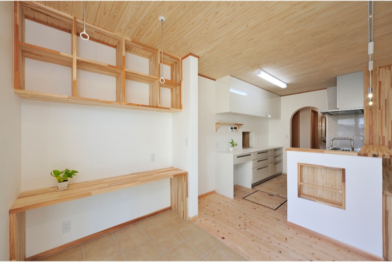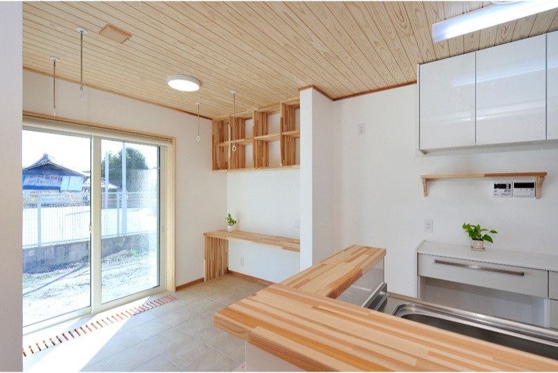 内部は、ヒノキの床板と杉の天井、漆喰い壁で自然素材満載の住宅に仕上がりました。