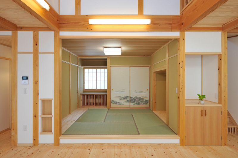 内壁は住宅の殆んどが、真壁造りで柱の顔が見えており、