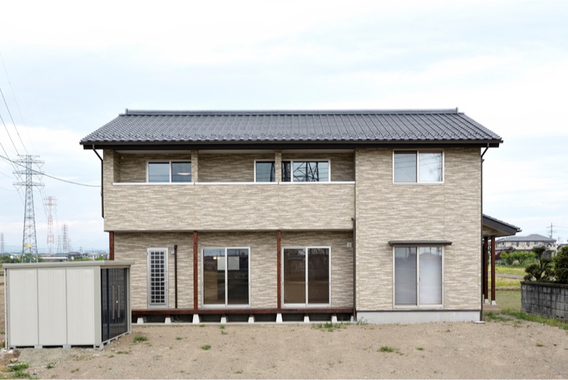 屋根には瓦、サイディングの外壁と柱がアクセントになっている住宅です。