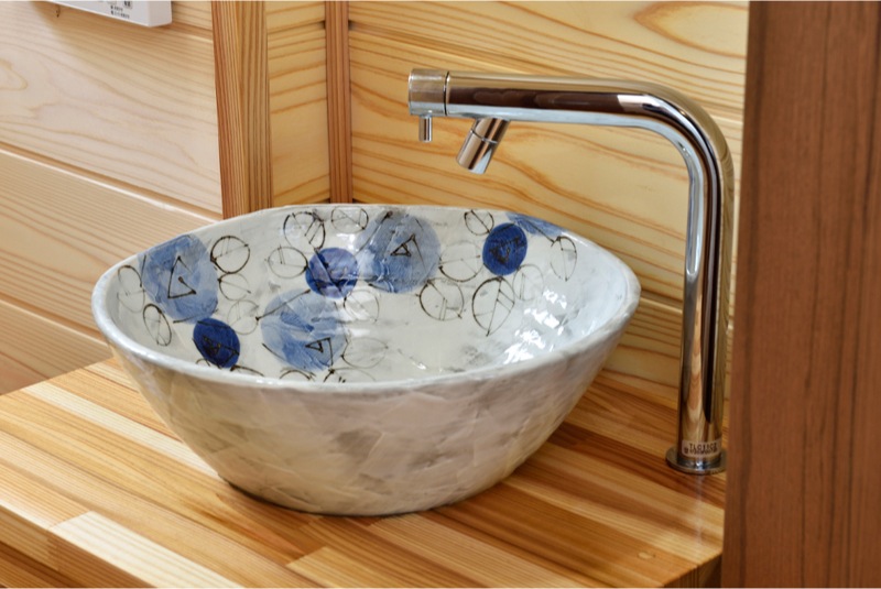 お客さんの研究熱心なところが、トイレのカウンターや手洗い器など沢山盛り込んで頂き和室の障子の細工は見事といわんばかりです。